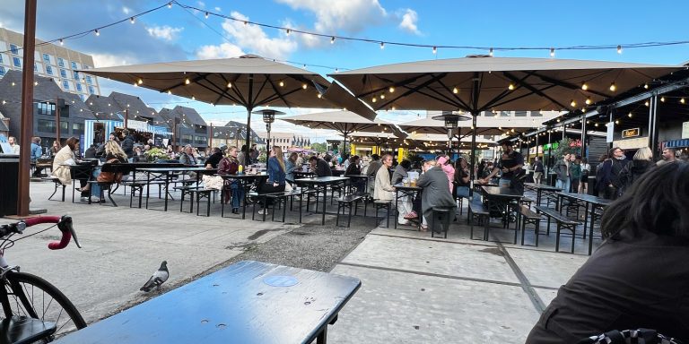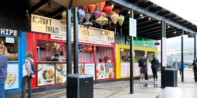 As with any food market, we’d do the rounds first to get the lay of the land and decide what we’d fancy (or in which order). There’s a variety of international foods available. And lucky for us (who never carry cash, let alone in rarely used currencies), paying by card was no problem at all at any of the stalls.